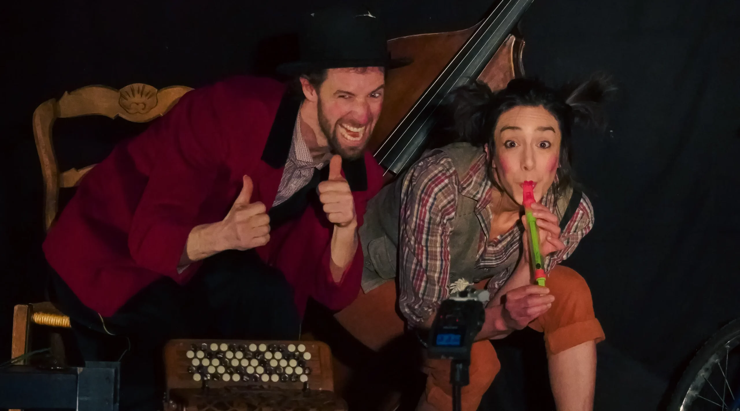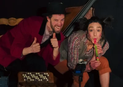 Maximilien et Louise, deux artistes musiciens-comédiens de la Famille Guinguette ont apportés dans leurs valise 3 spectacles musicaux jeune public.